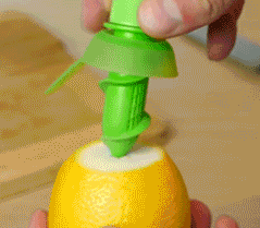 - This product called Juice sprayer, you want to get the juices do not need to cut or squeeze the fruit, simply insert it directly into the full fruit, such as orange juice, lemon, and then a finger pressing a nozzle, fresh juice can be evenly sprayed on the food you like.