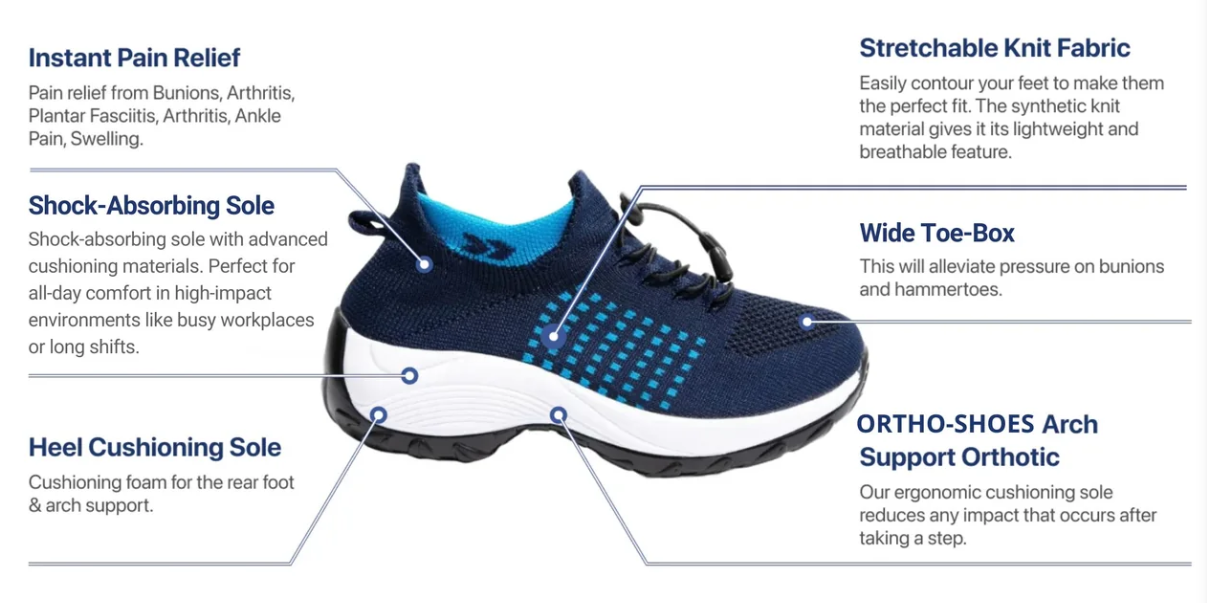 Designed for Life : Your feet are a marvel of nature. We created heel-first footwear to match. No flat insoles. No flimsy inserts. This biomechanically superior sneaker includes improved shock-absorbing cushion, upgraded ORTHO-WEAR heel-hugging tech, and arch-supporting ULTIMATE INSOLES for Pain Relief Beyond Belief